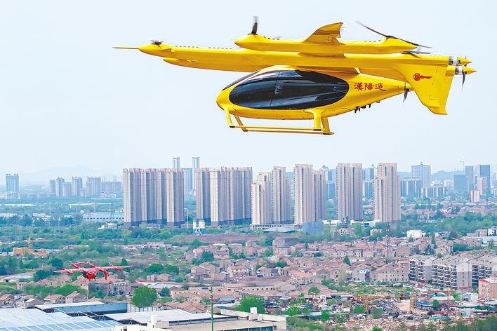 eVTOL航空器,即电动垂直起降飞行器,一种可装着货、坐着人在天上跑的“飞行汽车”。