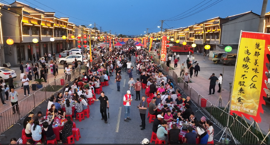 历经二十余载,宜城市小河镇高康村农家乐从最早的几家到如今的32家,其中年营业额过百万的农家乐就有10家。今年,当地投入3000万元对高康美食长廊进行全面升级,昔日的“美食长廊”蝶变为今天的“美食地标”。行走于高康村“美食文化街”,游客不仅能品尝到美食,还能沉浸于浓厚的楚文化底蕴之中,体验一场味觉与文化的双重盛宴。