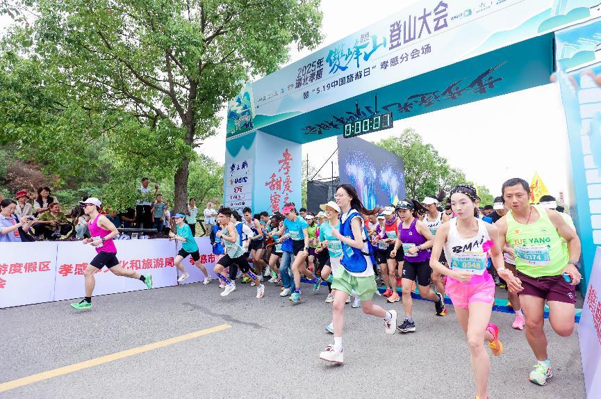 5月18日上午,2025湖北孝感双峰山登山大会暨“5.19中国旅游日”孝感分会场活动在双峰山旅游度假区举行。现场吸引了来自中外各地的众多登山爱好者、武汉及周边地市游客、附近群众共10600余人参与。选手们在森林中穿越,用脚步丈量双峰山,体验自然与文体旅交融的魅力。