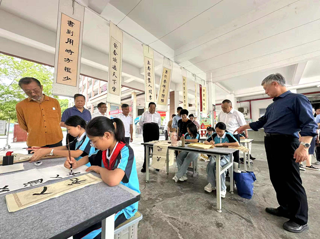 当天,中国楹联学会调研组一行实地探访当地将传统文化融入教育、行业与生活的创新实践,见证楹联艺术在当代焕发的生机。中国楹联学会会长李培隽、中国楹联学会名誉会长李殿仁、中国楹联学会顾问委员会主任连辑、国家乡村振兴局开发指导司原副司长刘晓山、中国楹联学会常务副会长(法人)肖良平等参加调研,广水市委书记杨光胜介绍了广水楹联文化建设情况。