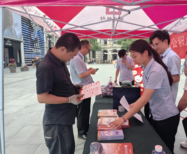 活动现场,工作人员在步行街上摆设展台,放置公积金主题横幅、易拉宝等宣传物料,商场的大屏幕上循环播放着《灵活就业人员缴存政策宣传》视频,湖北银行多名工作人员向来往市民宣传公积金政策。不少市民被吸引前来咨询:“什么是灵活就业人员?”“灵活就业人员缴存了公积金后,能否商转公?”
