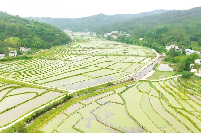 6月5日,俯瞰利川市凉雾乡继昌村莼菜种植基地。 (湖北日报全媒记者 蔡俊 摄)