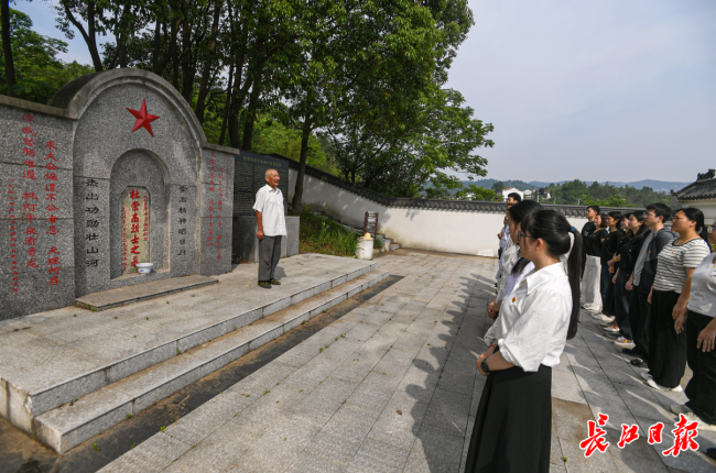 经过武汉市各级政府部门、驻村工作队的接力修缮,烈士墓于2021年扩建成“杜崇杰烈士陵园”,成为姚家集街道开展党日活动、进行革命教育的重要场地。清明时节的少先队员宣誓声,“七一”时党员重温誓词声与松涛声交织成新时代的红色交响。但最动人的画面,仍是霞光中老人佝偻扫地的剪影——那个曾躲在奶奶身后的少年,如今成了当地的“红色灯塔”。石碑上雕刻的“崇高精神昭日月,杰出功勋壮山河”,在阳光照耀下熠熠生辉,映照着一位老人用一生写就的承诺。