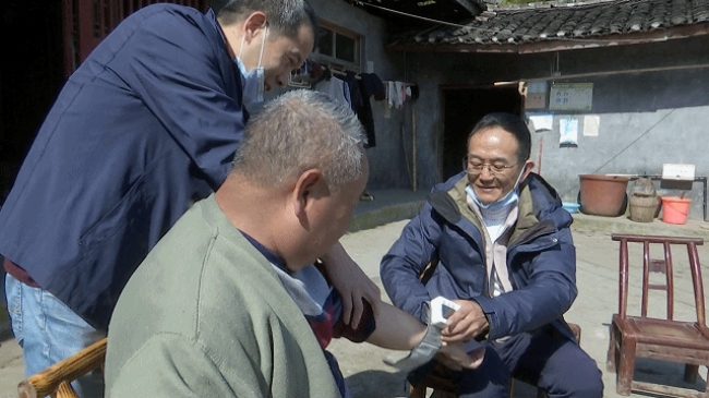 村民张言松说:“不管再怎么忙,他们十天一次,一个月要到我家来三次,即使下大暴雨,都会过来。他们打着电筒,一身淋湿。”