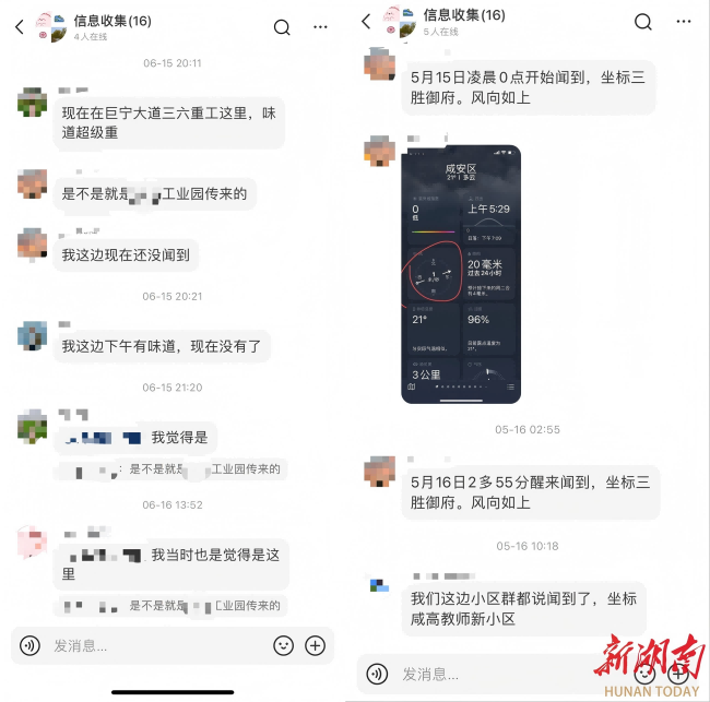周邹采纳了提议,成为了群主。在她向三湘都市报记者展示的维权群中,目前已有16个投诉人。每当有人闻到异味,就会立马打开手机的天气软件查询当时风向,并将时间、位置等信息报告至群中。