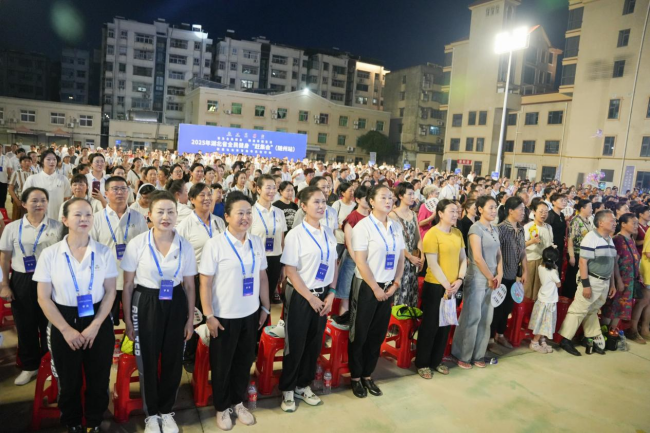 20时,庄严的国歌划破夜空,2025年湖北省全民健身“赶集会”(随州站)正式启幕。随州市曾都区人民政府副区长刘娜致辞,社会体育指导员代表宣读《全民健身志愿服务倡议书》,仪式上,省社体中心向齐星健身村捐赠体育用品一批。随着省社体中心主任严汉华宣布活动开始,一场汇聚力与美的全民健身展演震撼上演。