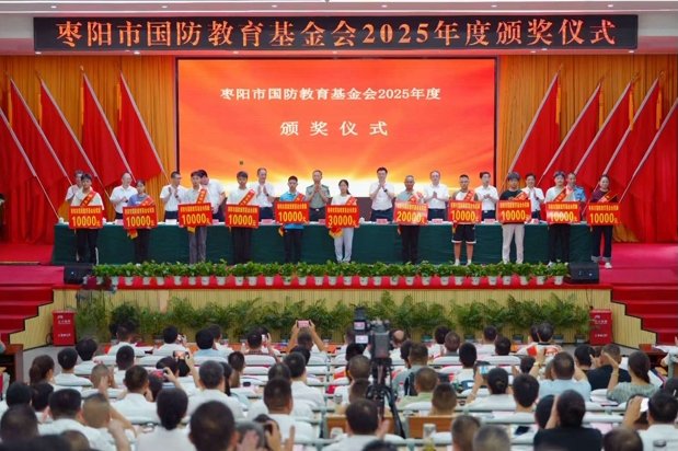 8月10日,湖北省枣阳市国防教育基金会正式授牌成立并举行颁奖仪式,22名2025年考取军事院校的枣阳籍优秀学子分别获得1万元-3万元奖励,枣阳市第一中学因6名学生考上军校,获得3万元奖励。