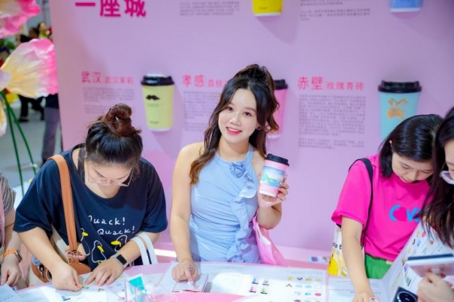 穿着汉服来逛展的李女士说:“爷爷不泡茶给我的印象一直很尊重和关注传统文化。它之前还和武汉的汉服社做过联名共展,用奶茶产品吸引大家关注汉服文化。爷爷不泡茶这次也带来很多有非遗元素的文创周边,吸引我也来这边排队参加互动游戏。”