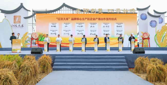 推介会上,一批“江汉大米”核心企业与全国优质渠道商正式达成战略合作,他们将全面整合供应链资源,打通从产区到销区的“最后一公里”,共同推动“江汉大米”迈向品牌化、规模化发展新阶段。金融机构还与相关企业签订战略合作协议,以金融“活水”激发江汉大米产业倍增活力。