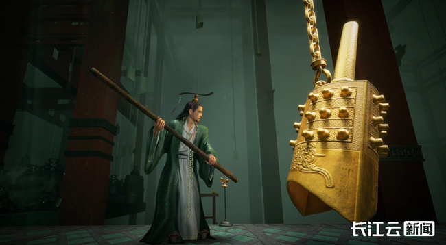 值得一提的是,剧情上随州VR馆打造了更为丰富的剧情路线。“七幕剧情、四重感受”叙事主线,让随州曾侯乙编钟VR馆的体验远超普通VR项目的“视觉刺激”。专为随州定制的“编钟乐舞”剧情中,游客置身浩瀚星河,看巨型编钟如月球般悬浮转动,乐师在星辰间舞动奏响千年礼乐;在“青铜空间:钟庭”里,目送曾侯乙走过堆积如山的残次编钟,走向他执着一生追求的完美编钟……整个体验过程中,“沉浸感、认知感、共鸣感、归属感”四感贯通,观众不再是历史的“看客”,而是变成参与编钟铸造、见证礼乐诞生的“参与者”。穿越体验的最后环节,随州博物馆送出了出人意料的彩蛋,通过虚拟技术,将随州市标鹿角立鹤渲染成了仙气飘飘的神仙坐骑,带你巡游千里江山,将二次元与古代青铜文明进行了完美融合,网游副本的玄幻设计让人直呼想不到。