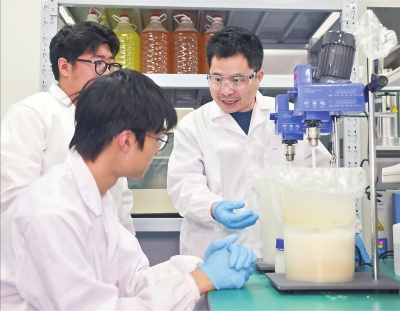华中农业大学工学院教授刘培文(右)成立公司专注高性能甲壳素纳米晶生产及应用,团队即将入驻星创空间。 长江日报记者胡冬冬摄