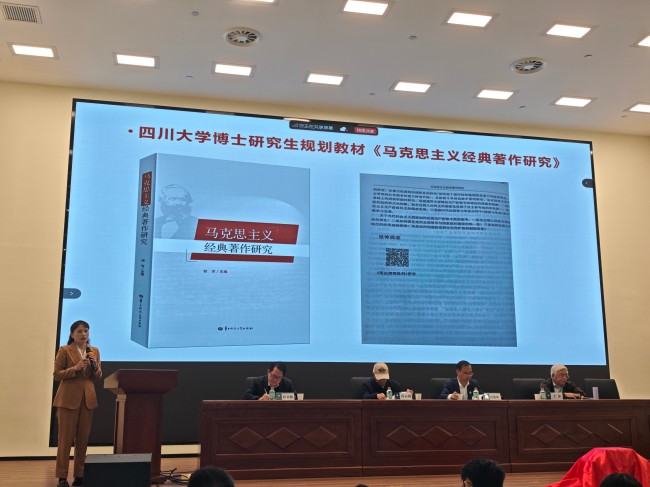 胡芳教授分享了著作的撰写心得与研究脉络,阐述了在AI时代深入研读马克思主义经典著作的重要性。她介绍,这本新书希望从唯物史观视域出发,回应AI时代为什么要研读马克思主义经典原著、怎样研读马克思主义经典原著、如何从马克思主义经典中进行创新等话题,通过“学用结合”“析议互促”“读思并举”等教学方法创新,以及纸质教材与数字资源相融合的教学形式创新,构建起“AI教材—学术研究—AI教学”三位一体的教学科研新范式。