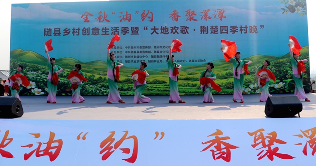 作为随州市油茶种植面积最大的乡镇,澴潭镇7万多亩油茶基地迎来盛产期,漫山遍野的油茶果凝结着乡亲们的汗水。表演者们用飞扬的歌声和翩跹的舞姿,用深情旋律诉说着“油茶小镇”的发展故事。描绘了乡村振兴的壮美蓝图,展现新时代随县农民奋发向上的精神风貌和民间文化的绚丽多彩,处处可见产业与文化的深度融合。