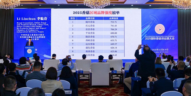 11月8日,在山东淄博开幕的2025国际香菇供应链大会上,“随州香菇”凭借753.71的品牌强度指数脱颖而出,稳居榜单首位。