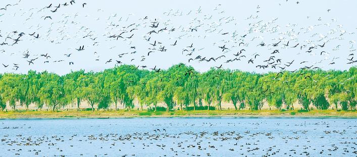 12月1日,武汉市东西湖区柏泉府河湿地天鹅湖,成群的候鸟在滩涂上翔集,形成一幅山水人城和谐相融的生态画卷。近年来,东西湖区持续推进府河湿地环境保护,去年同期来的越冬候鸟1万余只,今年目前就有2万多只,预计月底将达3万多只,而且种类由以往的20多种增加到40多种,小天鹅、白琵鹭等珍稀物种数量显著增加。(视界网郭贤乐摄)