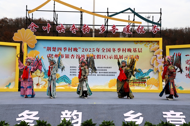 据介绍,“四季村晚”活动是文化和旅游部推动基层文化繁荣、促进乡村旅游发展的重要品牌。此次冬季示范展示活动落地随州曾都,不仅展示了湖北省在挖掘地方文化资源、打造特色群众文化活动品牌方面的成果,也将优秀的公共文化服务嵌入山水美景。这场在千年银杏树下举办的“村晚”,不仅为2025年全国“四季村晚”活动开启了温暖的冬季篇章,也为持续擦亮荆楚文化品牌、助力乡村文化振兴注入了新的活力。(通讯员:赵牧、彭军纪)