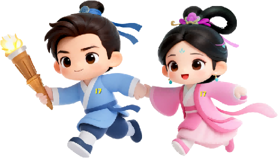 吉祥物灵感源自孝感非遗《董永与七仙女》传说,以“槐荫为媒”为原型,融合董永的淳朴坚韧与七仙女的灵秀神性,塑造出兼具传统韵味与运动美学的形象。二者阳光亲和、活力奔跑,既体现“发展体育运动、增强人民体质”的宗旨和全民健身理念,又彰显更快、更高、更强的体育精神,展现孝感体育特色,传递健康生活的美好祝愿。