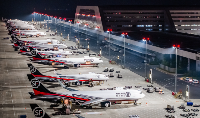 图为夜色中的鄂州花湖国际机场。柯皓薛婷摄
