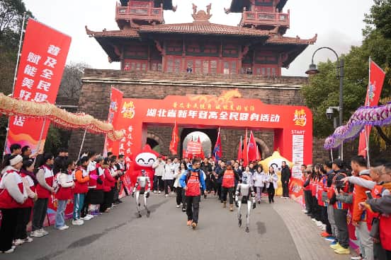 湖北省新年登高全民健身活动举行 机器人伴健步入新年