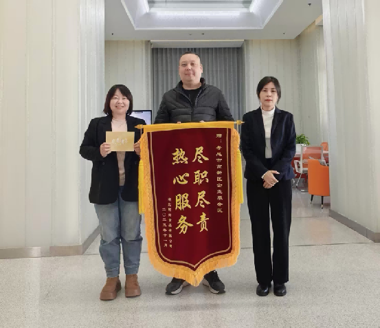 “高新区企业服务专区的优质环境、细心指导与高效办事速度,成为我们优化客户服务的‘学习榜样’。”湖北阿兴食品有限公司在感谢信中这样写道。而一面印着“尽职尽责,热心服务”的锦旗,更是企业对高新区服务工作最凝练、最真挚的肯定。