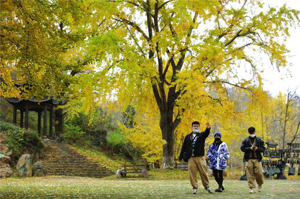 醉美金秋季,自在大洪山。15日下午,采风团首站来到国家4A级旅游景区、省级旅游度假区大洪山。嘉宾们登顶宝珠峰凭栏远眺,入大慈恩寺听梵音阵阵,穿行山间看层林尽染。在曾都区洛阳镇千年银杏谷景区,树上树下满是金黄的扇形银杏叶,嘉宾们争相拍摄、直播美景。