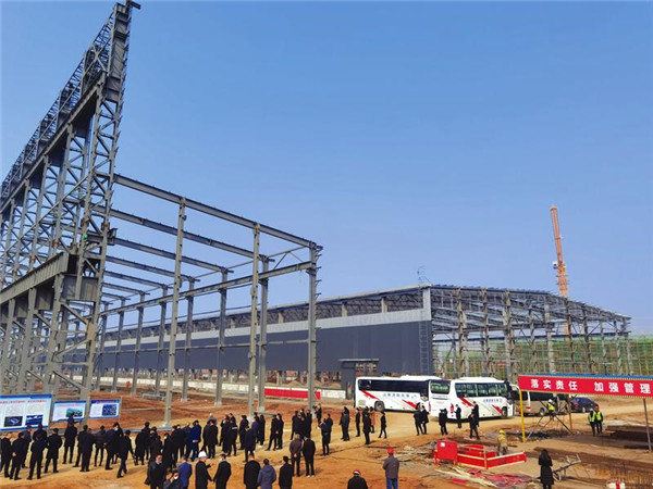 斯诺年产10万吨新能源动力电池负极材料一体化项目总投资30亿元,图为正在建设的生产车间。(随州日报全媒记者冯家园摄)